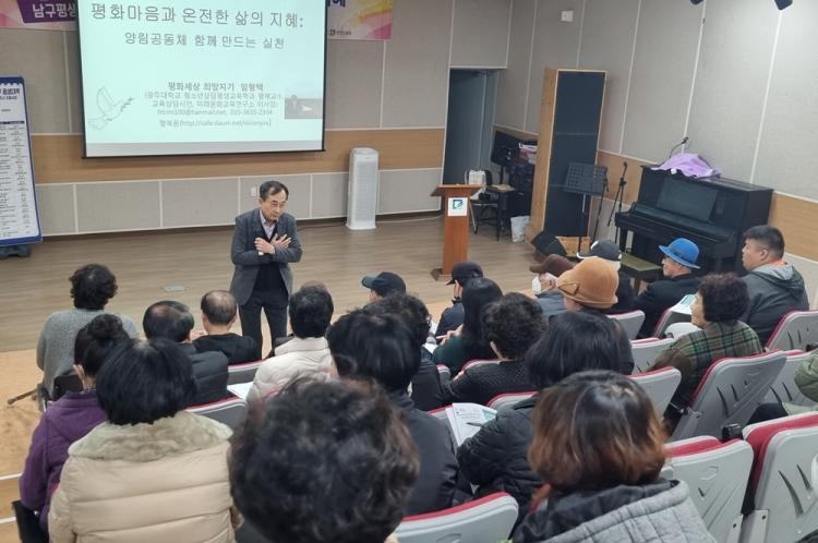 Æò»ýÇнÀµµ½Ã Áö¿ø»ç¾÷À¸·Î ÁøÇàµÈ À̳¯ Ư°¿¡¼ ÀÓ ¸í¿¹±³¼ö´Â û³â°ú Áö¿ª ÁֹΠ40¿© ¸íÀ» ´ë»óÀ¸·Î ¡®ÆòÈ ¸¶À½°ú ¿ÂÀüÇÑ »îÀÇ ÁöÇý: ¾ç¸² °øµ¿Ã¼ ÇÔ²² ¸¸µå´Â ½Çõ¡¯À» ÁÖÁ¦·Î ´Ù¾çÇÑ À̾߱⸦ ÁÖ°í¹Þ¾Ò´Ù.