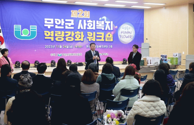 ¹«¾È±º»çȸº¹Áö»çÇùȸ(ȸÀå À±Çý½Å)¿¡¼ ÁÖ°üÇÑ À̹ø ¿¬¼öȸ´Â °ü³» »çȸº¹Áö½Ã¼³ 50°³¼Ò ¾à 150¸íÀÇ Á¾»çÀÚ°¡ Âü¼®ÇØ ¡°¹«¾ÈÀÇ ²É »çȸº¹Áö½Ã¼³Á¾»çÀÚ ÆÄÀÌÆÃ!¡± ±¸È£ ¾Æ·¡ Á¶¿µ±¸ ÅäÅ©¼î¸¦ µè°í ¼ÒÅë ÈÇÕÀÇ ½Ã°£À» º¸³»¸ç ÀçÃæÀüÀÇ ½Ã°£À» °¡Á³´Ù.