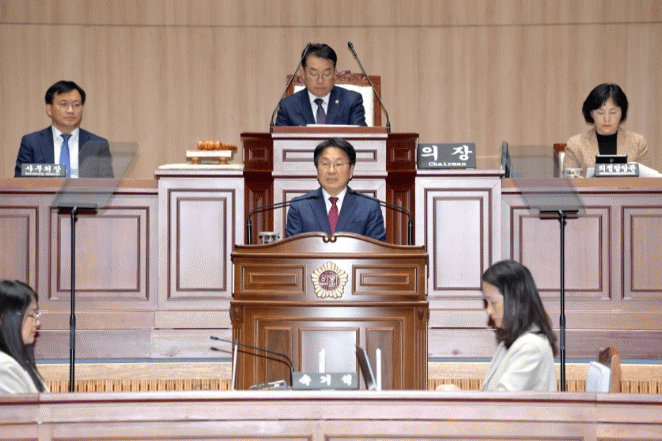 ° ½ÃÀåÀº À̳¯ ±¤ÁÖ½ÃÀÇȸ º»È¸ÀÇ¿¡¼ 15ºÐ°¡·® ¿¬¼³À» ÇÏ¸ç ¡°°æÁ¦°¡ ¾î·Á¿ï ¶§ ºúÀ» ³»¼¶óµµ °ú°¨ÇÏ°Ô È®ÀåÀçÁ¤À» ÆîÃÄ ¾î·Á¿î °¡°è¿Í ±â¾÷¿¡ µµ¿òÀ» ÁÖ¾î¾ß ÇÑ´Ù¡±¸ç À̰°ÀÌ ¸»Çß´Ù.