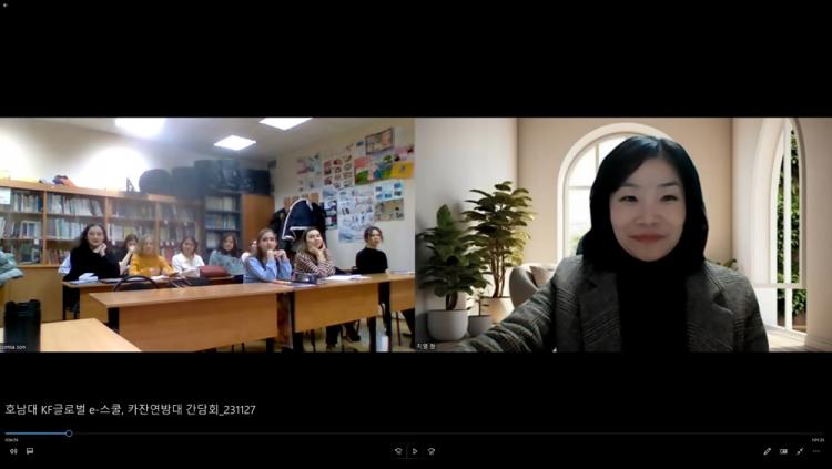 ½Ç½Ã°£ ¿Â¶óÀÎÀ¸·Î ÁøÇàµÈ À̳¯ °£´ãȸ¿¡´Â ¡®È£³²´ë KF ±Û·Î¹ú e-½ºÄð Çѱ¹¾î±³À° »ç¾÷´Ü(´ÜÀå ±Û·Î¹úÇѱ¹¾î±³À°Çаú À±¿µ ±³¼ö)¡¯ÀÇ ÇöÁö¿µ °»ç(Çѱ¹¾î±³À°¿ø), ·¯½Ã¾Æ Ä«ÀÜ¿¬¹æ´ë ¼Õ¼Ò¹Ì¾Æ ±³¼ö(Çѱ¹¿ª»çÇаú)¿Í ÇлýµéÀÌ Âü¿©ÇßÀ¸¸ç, °¡À» Çб⿡ µè°í ÀÖ´Â ¡®Çѱ¹¾î ¾îÈÖ È°¿ë ¿¬½À(VODÄÜÅÙÃ÷)¡¯ ¼ö¾÷¿¡ ´ëÇØ ÁúÀÇ ÀÀ´äÇÏ´Â ½Ã°£À» °¡Á³´Ù.