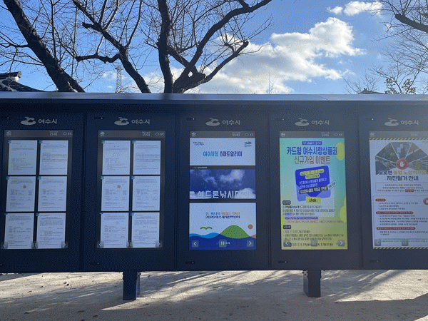 1ÀÏ ½Ã¿¡ µû¸£¸é ¿©¼ö½Ã´Â ÃÖ±Ù ½Ãû Á¤¹®¿¡ 65ÀÎÄ¡ ÅÍÄ¡½ºÅ©¸° 5¸éÀ¸·Î ±¸¼ºµÈ ¡®½º¸¶Æ®¾Ë¸®¹Ì ÀüÀÚ°Ô½ÃÆÇ¡¯À» ¼³Ä¡ÇÏ°í º»°Ý ¿î¿µÀ» ½ÃÀÛÇß´Ù.