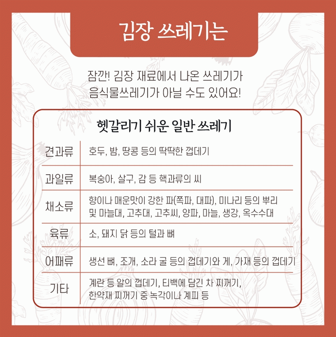 ´Ù¸¸, °¡´ÉÇÑ ÇÑ ÀÛ°Ô ½ä¾î³õÀº ±èÀåÀç·á(¹èÃß³ª ¹«)¿Í ÀýÀ̰ųª ¾ç³ä °úÁ¤¿¡¼ ³ª¿Â ¾ç³ä, Á£°¥·ù µî À̹°ÁúÀÌ ¹¯Àº ä¼Ò·ù ¹èÃâÀº À½½Ä¹°·ù Æó±â¹° Àü¿ë ¼ö°Å ¿ë±â¸¦ ÀÌ¿ëÇØ¾ß ÇÑ´Ù.