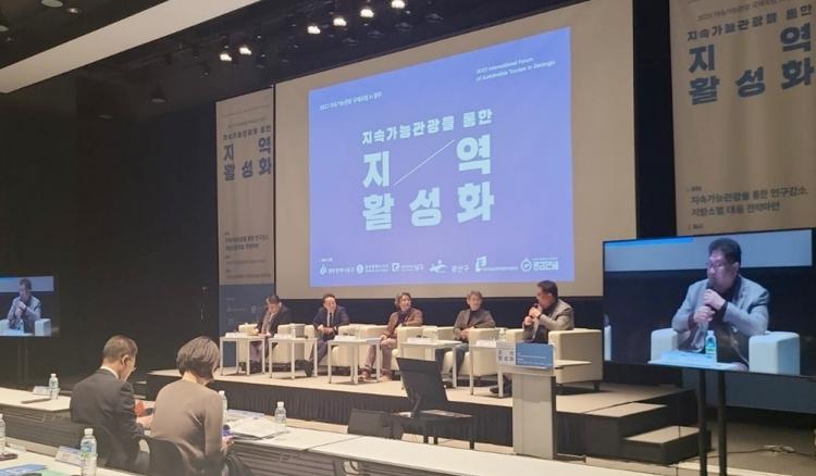 Á¤Àº¼º ±³¼ö´Â ÀÓÅà µ¿±¸Ã»Àå°ú °øÁ¤°ü±¤Æ÷·³ ¿î¿µÀ§¿øÀåÀÎ ±Ç¼±ÇÊ ¸ñ¿ø´ëÇб³ ±³¼öÀÇ ±âÁ¶¹ßÁ¦¿¡ ´ëÇÑ Åä·ÐÀÚ·Î Âü¼®, ¡°Áö¼Ó°¡´ÉÇÑ Áö¿ª°ü±¤À» Ãß±¸Çϱâ À§Çؼ´Â ¿ì¼± Áö¿ª»çȸÀÇ ¿©°¡È°µ¿ ȯ°æÁ¶¼ºÀ» ÅëÇØ °ü±¤Áö Áö¿ªÁÖ¹ÎÀÌ Áñ±æ ¼ö ÀÖ´Â ½Ã¼³°ú ÇÁ·Î±×·¥ÀÌ ¼±ÇàµÇ¸é, ÀÚ¿¬½º·´°Ô ¿Ü·¡ °ü±¤°´ÀÌ ÇØ´ç Áö¿ªÀ» ¹æ¹®ÇÏ°Ô µÇ°í Áö¿ªÀÇ ´Ù¾çÇÑ È¯°æÀ» ÁöŰ¸é¼ °ü±¤»ê¾÷ Ȱ¼ºÈ¸¦ ÀÌ·ê ¼ö ÀÖ´Ù.¡±°í Á¦½ÃÇß´Ù.