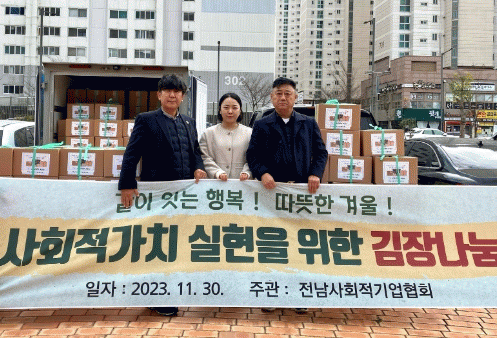 Àü³²»çȸÀû±â¾÷Çùȸ´Â Ãë¾à°èÃþ ÀÏÀÚ¸® âÃâ, »çȸ ¼ºñ½º Á¦°ø µî »çȸÀû°¡Ä¡ ½ÇÇö¿¡ Èû¾²±â À§ÇØ Àü³²¿¡ ÀÖ´Â »çȸÀû±â¾÷ÀÌ ¼³¸³ÇÑ »çȸÀûÇùµ¿Á¶ÇÕÀ¸·Î ¸Å³â »çȸÀû°¡Ä¡ ½ÇÇöÀ» À§ÇØ »çȸÀû±â¾÷ ¹°Ç°À» ¸ð¾Æ Àå¾ÖÀΰú Ȧ·Î»ç´Â ¾î¸£½Å µî ¾î·Á¿î ÀÌ¿ô¿¡°Ô Àü´ÞÇÏ´Â Çà»ç¸¦ Á¤±âÀûÀ¸·Î À̾°í ÀÖ´Ù.