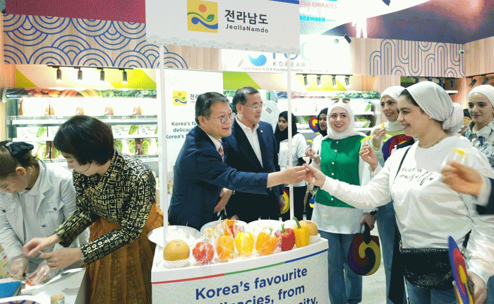 Àü³²µµ´Â ¾Æ¶ø ¿¡¹Ì¸®Æ® ÃÖ´ë µµ½Ã µÎ¹ÙÀÌ¿¡¼ 2ÀÏ(ÇöÁö ½Ã°£) Çѱ¹³ó¼ö»ê½ÄǰÀ¯Åë°ø»ç(aT)°¡ ¿î¿µÇÏ´Â Çѱ¹½Äǰ ¼öÃâ ¾ÈÅ׳ª¼ó(K-Fresh Zone)¿¡¼ Àü³²½Äǰ ÆÇÃËÇà»ç¸¦ °³ÃÖÇß´Ù.