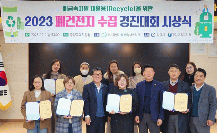 ÃÖ¿ì¼ö»óÀ» ¼ö»óÇÑ ±¤¾çÁß¾ÓÃʵîÇб³ÀÇ È«¿µ´ö ±³ÀåÀº ¡°¡®ºÎ½ÄµÈ °ÇÀüÁö´Â Åä¾ç°ú ¼öÁúÀ» ¿À¿°½ÃŰÁö¸¸, Æó°ÇÀüÁö¸¦ ÀçȰ¿ëÇÔÀ¸·Î½á ȯ°æ¿À¿° ¹× ±Ý¼ÓÀÚ¿øÀÇ ÀçȰ¿ëÀ» ÃËÁøÇÒ ¼ö ÀÖ´Ù¡¯´Â ¾È³»ÀåÀ» ÇÐºÎ¸ð¿¡°Ô ¹èºÎÇϰí, Çлýµé¿¡°Ô ÆóÀÚ¿ø ÀçȰ¿ë¿¡ ´ëÇØ ±³À°ÇÔÀ¸·Î½á Æó°ÇÀüÁö ¼ö°Å¿¡ ÈûÀ» ¸ð¾Ò´Ù¡±°í ¹àÇû´Ù.