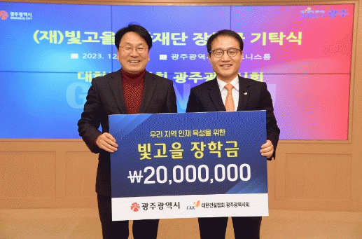 °±âÁ¤ ±¤ÁÖ½ÃÀåÀº ¡°Áö¿ªÀÎÀç À°¼ºÀ» À§ÇØ ÀåÇбÝÀ» ±âŹÇÑ ´ëÇѰǼ³Çùȸ ±¤ÁÖ½Ãȸ¿¡ °¨»çÇÏ´Ù¡±¸ç ¡°¾î·Á¿î »óȲ ¼Ó¿¡¼µµ ±¤ÁÖ¸¦ À̲ø¾î °¥ ÀÎÀ縦 Ű¿ì´Âµ¥ ÈûÀ» ¸ð¾ÆÁØ ¸¸Å ±¤Áֽõµ ÀÎÀç¾ç¼º »ç´Ù¸®¸¦ ¿Ï¼ºÇسª°¡´Âµ¥ ´õ¿í ¸ÅÁøÇϰڴ١±°í ¸»Çß´Ù.