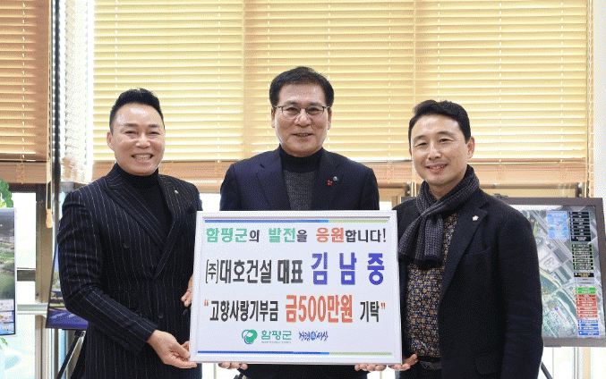 5ÀÏ ±ºÀº ¡°¢ß´ëÈ£°Ç¼³ ±è³²Áß ´ëÇ¥°¡ ÇÔÆòÀÇ ¹ßÀüÀ» À§ÇØ °íÇâ»ç¶û±âºÎ±Ý ÃÖ°í Çѵµ¾×ÀÎ 500¸¸¿øÀ» À̳¯ ±âŹÇß´Ù¡±°í ¹àÇû´Ù.