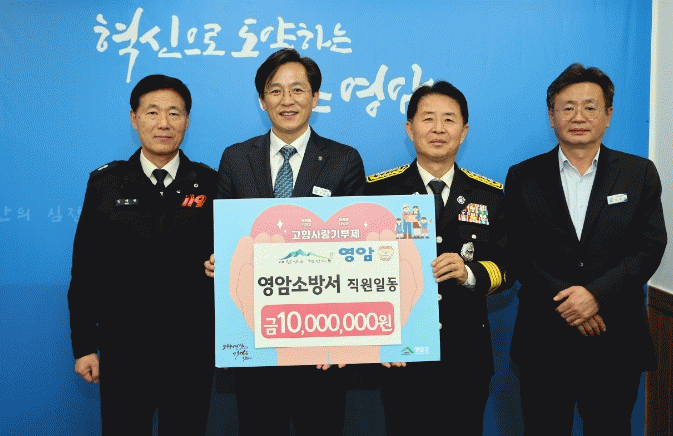 ±èÀç½Â ¿µ¾Ï¼Ò¹æ¼ÀåÀº ¡°Áö¿ª»çȸ ¹ßÀüÀ» À§ÇÑ °íÇâ»ç¶û±âºÎÁ¦¿¡ ¿µ¾Ï¼Ò¹æ¼ Á÷¿øµé°ú ÇÔ²² µ¿ÂüÇØ ¶æ±í´Ù. ±âºÎ±ÝÀÌ Áö¿ª°ú Áö¿ª¹ÎÀ» À§ÇØ ±ÍÇÏ°Ô ¾²ÀÌ±æ ¹Ù¶õ´Ù¡±°í ÀüÇß´Ù.