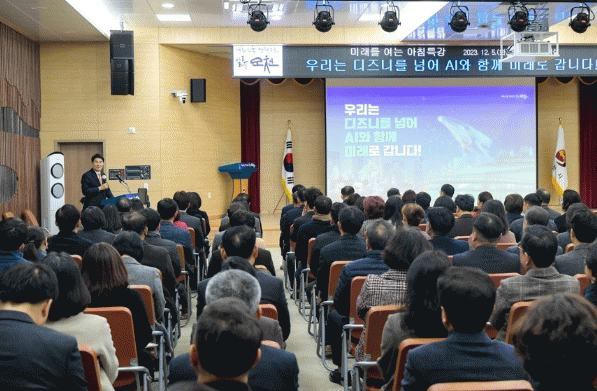 ¡¸¿ì¸®´Â µðÁî´Ï¸¦ ³Ñ¾î AI¿Í ÇÔ²² ¹Ì·¡·Î °©´Ï´Ù¡¹¶ó´Â ÁÖÁ¦·Î °³ÃÖµÈ À̹ø Ư°Àº °ø¹«¿ø 300¿© ¸íÀÌ Âü¼®ÇÑ °¡¿îµ¥ ³ë°ü±Ô ¼øÃµ½ÃÀåÀÌ Á÷Á¢ °¿¬ÀÚ·Î ³ª¼ ´«±æÀ» ²ø¾ú´Ù.