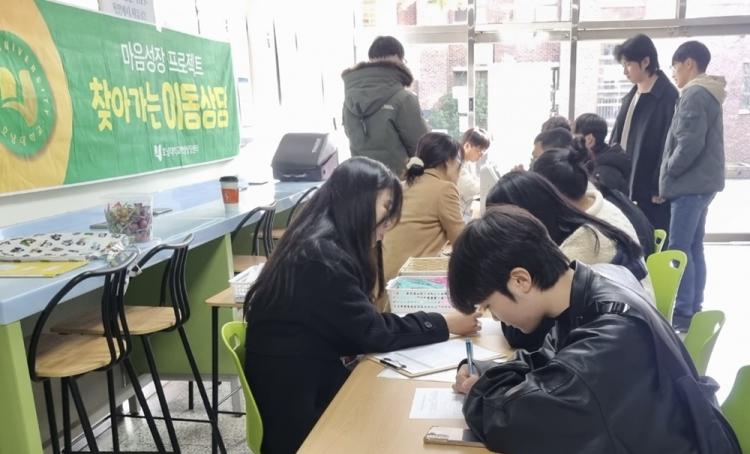 [ÅåÅå´º½º]È£³²´ëÇб³ Çлý»ó´ã¼¾ÅÍ(¼¾ÅÍÀå ±è¹Ì·Ê)´Â 12¿ù 5ÀÏ »çȸ°æ¿µ´ëÇÐ 6È£°ü 1Ãþ¿¡¼ ¡®´ëÇлý ¸¶À½°Ç° Áö¿øÀ» À§ÇÑ Ã£¾Æ°¡´Â À̵¿»ó´ã¡¯À» ÁøÇàÇß´Ù.