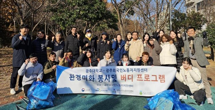 [ÅåÅå´º½º]±¤ÁÖ´ëÇб³(ÃÑÀå ±èµ¿Áø) ÇлýµéÀº Áö³ 3ÀÏ ±¤»ê±¸ Àå´öµ¿ µµ¼°ü °ø¿ø ÀÏ¿ø¿¡¼ Áö¿ª »çȸ ȯ°æ ¹ÌÈ ºÀ»çȰµ¿À» ÆîÃÆ´Ù. ¶ÇÇÑ ¿Ü±¹ÀÎ ³ëµ¿ÀÚµéÀÇ ¾ÈÁ¤ÀûÀÎ Á¤Âø°ú »îÀÇ Áú Çâ»óÀ» À§ÇØ Çѱ¹¾î ¹öµð ÇÁ·Î±×·¥µµ ¿î¿µÇß´Ù.