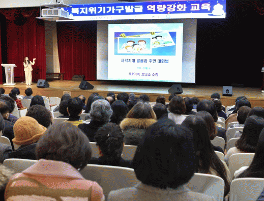 À̹ø ±³À°Àº À§±â »óȲ ÀÎÁö ¹× º¹Áö À§±â°¡±¸ ¹ß±¼°ú ÀÌ¿¡ µû¸¥ ¸ÂÃãÇü ´ëȹýÀ» ½ÇÁ¦ »ç·Ê¸¦ Áß½ÉÀ¸·Î »ìÆìº¸°í °íµ¶»ç µî À§±â »óȲ¿¡ óÇÑ ÁֹεéÀÇ Æ¯Â¡°ú À§±â ÀÌ¿ô »ó´ã ±â¼ú µî¿¡ ´ëÇØ °ÀÇÇß´Ù.
