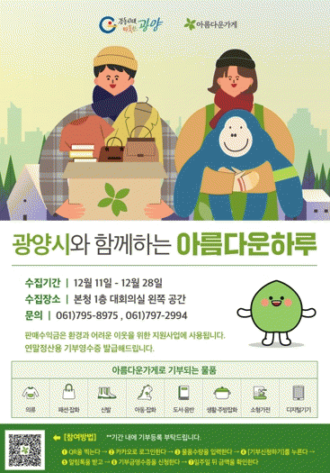 ±âºÎ¹ÞÀº ¹°Ç°À¸·Î 2024³â 1¿ù 8ÀÏ(¿ù)¿¡ ¡®±¤¾ç½Ã¿Í ÇÔ²²ÇÏ´Â ¾Æ¸§´Ù¿î ÇϷ硯 ÆÇ¸Å Çà»ç°¡ °³ÃֵȴÙ. ÆÇ¸Å Çà»ç´Â ¿ÀÀü 10½ÃºÎÅÍ ¿ÀÈÄ 8½Ã±îÁö ÁøÇàµÇ¸ç, ±¤¾ç½Ã Á÷¿øµé»Ó¸¸ ¾Æ´Ï¶ó Àü ½Ã¹ÎÀÌ Âü¿© ¹× ±¸¸Å°¡ °¡´ÉÇÏ´Ù.