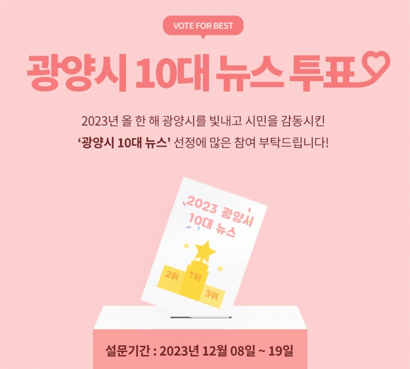 ¼³¹®Á¶»ç´Â 12¿ù 8ÀϺÎÅÍ 19ÀϱîÁö 12Àϰ£ ±¤¾ç½Ã¹ÎÀ» ´ë»óÀ¸·Î ÁøÇàµÇ¸ç, ±¤¾ç½Ãû ȨÆäÀÌÁö(½Ã¹ÎÂü¿©¡æ¼³¹®Á¶»ç) ¶Ç´Â ³×À̹ö ÆûÀ» ÅëÇØ Âü¿© °¡´ÉÇÏ´Ù. ³×À̹ö ÆûÀº ±¤¾ç½Ãû īī¿À½ºÅ丮, ºí·Î±×, ÆäÀ̽ººÏ µî SNS¸¦ ÅëÇØ Á¢¼ÓÇÒ ¼ö ÀÖ´Ù.