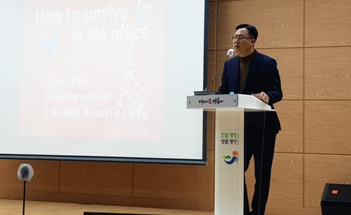 1ºÎ´Â ¡®How to survive in the office(»ç¹«½Ç¿¡¼ »ì¾Æ³²´Â ¹æ¹ý)¡¯À» ÁÖÁ¦·Î, Á÷Àå»ýȰ ÈÄ¹è °ø¹«¿øµé¿¡°Ô ÀüÇÏ´Â À̾߱â·Î ÁøÇàµÆ´Ù.