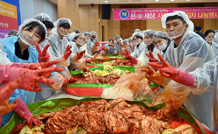 [ÅåÅå´º½º]È£³²´ëÇб³ »ç¶û³ª´®¼¾ÅÍ(¼¾ÅÍÀå À̹«Çü)´Â ¿¬¸»¿¬½Ã Áö¿ª»çȸ ¼Ò¿Ü°èÃþÀÇ °Ü¿ï³ª±â¸¦ µ½±â À§ÇØ 12¿ù 12ÀÏ ¿ÀÀü 10½ÃºÎÅÍ 2½Ã°£µ¿¾È ±³³» IT½ºÄù¾î¿¡¼ ¡®2023³â ¿Â(è®)¼¼»ó, »ç¶ûÀÇ ±èÀå±èÄ¡ ³ª´®¡¯ Çà»ç¸¦ °®°í, 250Æ÷±â(650§¸)ÀÇ ±èÄ¡¸¦ ´ã±×´Â Çà»ç¸¦ °¡Á³´Ù.