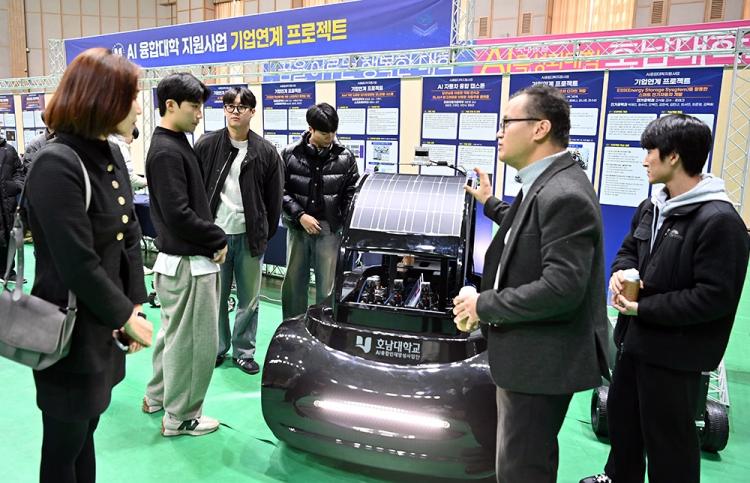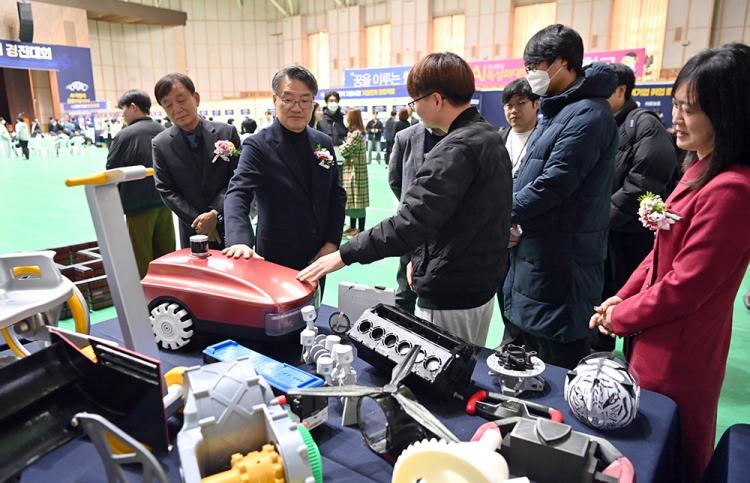 ¹Ú»óö ÃÑÀåÀº ¡°Àü½ÃµÈ ÀÛǰ ÇϳªÇϳª¿¡ ÀçÇлý°ú Áöµµ±³¼öµéÀÇ ³î¶ó¿î âÀǷ°ú È¥½ÅÀÇ ³ë·ÂµéÀÌ ¿³º¸ÀδÙ. ±×µ¿¾ÈÀÇ ³ë°í¿¡ Å« ¹Ú¼ö¿Í °Ý·Á¸¦ º¸³½´Ù¡±°í Ä¡ÇÏÇÏ¸é¼ ¡°ÀΰøÁö´É ±â¹ÝÀÇ AIÀÚµ¿Â÷À¶ÇÕ Àü¹®ÀÎÀç¾ç¼ºÀ» À§ÇØ ½Ç¹«±³À°À» ¹Ì·¡ ±³À°ÀÇ Çٽɰ¡Ä¡·Î »ï°í, Çлý ¸ðµÎ°¡ ÀΰøÁö´É ÀÚµ¿Â÷»ê¾÷À» ¼±µµÇÒ ¼ö ÀÖ´Â ÀÎÀç°¡ µÉ ¼ö ÀÖµµ·Ï Èû¾²°Ú´Ù¡±°í ¸»Çß´Ù.