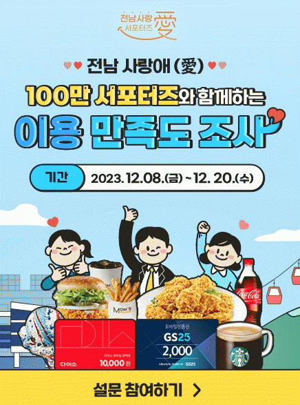 À̹ø Á¶»ç´Â ¹®ÀÚ ¹× ¼Æ÷ÅÍÁî ´©¸®Áý, īī¿ÀÅå ä³ÎÀ» ÅëÇØ ¹ß¼ÛÇÑ ¿Â¶óÀÎ ¼³¹®Á¶»ç¸¦ ÅëÇØ ÁøÇàµÇ¸ç, Àü³² »ç¶û¾Ö ¼Æ÷ÅÍÁî¿¡ °¡ÀÔÇÑ »ç¶÷À̶ó¸é ´©±¸³ª Âü¿©ÇÒ ¼ö ÀÖ´Ù.