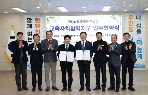 À̳¯ Çù¾à½Ä¿¡´Â ±è»ê ¹«¾È±º¼ö, ±è´ëÁß Àü¶ó³²µµ ±³À°°¨, ±è¼±Ä¡ ¹«¾È±³À°Áö¿øÃ» ±³À°Àå µÕ ¹«¾È±º¡¤Àü¶ó³²µµ±³À°Ã»¡¤¹«¾È±º±³À°Áö¿øÃ» °ü°èÀÚ°¡ Âü¼®ÇßÀ¸¸ç ±è»ê ±º¼ö¿Í ±è´ëÁß ±³À°°¨Àº ±³À°ÀÚÄ¡Çù·ÂÁö±¸ ÀçÁöÁ¤ Çù¾à¼¿¡ ¼¸íÇϰí Çù·ÂÀ» ¾à¼ÓÇß´Ù.
