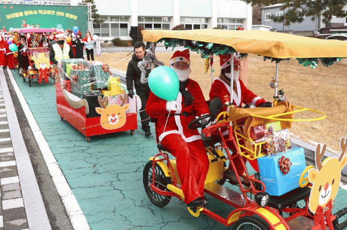 18ÀÏ °­ÁøÀ¾ Á߾ӷο¡¼­´Â »êŸŬ·Î½º ÆÛ·¹À̵尡 ¿­·È´Ù. ÀÌ ¿¬·ÊÇà»ç¿¡´Â »êŸ°¡ ²ö ·çµ¹ÇÁ ÀÚÀü°Å 3´ë¿Í ±º¼ö, ÀÇÀå, ±³À°Àåµµ »êŸº¹À» ÀÔ°í »êŸ ¿øÁ¤´ë 60¸í°ú ÇÔ²² ÇàÁøÇϸç Áֹε鿡°Ô ±ô¦ Å©¸®½º¸¶½º À̺¥Æ®¸¦ ½Ç½ÃÇß´Ù.