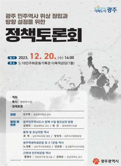 À̹ø Åä·Ðȸ´Â ±¤ÁÖÀÇ ¹ÎÁÖ¿ª»ç¿¡¼ ÁÖ¸ñ¹ÞÁö ¸øÇÑ µ¿Çаú È£³²ÀǺ´ ¿ª»ç, 3¡¤1¿îµ¿, ±¤ÁÖÇлýµ¶¸³¿îµ¿, ÃкҽùÎÇõ¸í µî ±ÙÇö´ë ¹ÎÁÖȿ ¿ª»ç¸¦ ÃѸÁ¶óÇØ ±¤ÁÖÀÇ À§»óÀ» Á¤¸³ÇÏ°í ¹Ì·¡¼¼´ë¿¡ ¹ÎÁÖ¿ª»ç¸¦ ¾î¶»°Ô °è½Â¡¤°øÀ¯ÇÒ °ÍÀÎÁö¸¦ °í¹ÎÇϱâ À§ÇØ ¸¶·ÃµÆ´Ù.