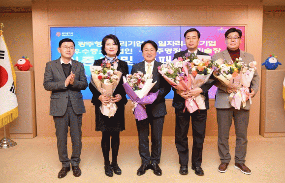 ±¤ÁÖ±¤¿ª½Ã´Â 19ÀÏ ½Ãû ºñÁî´Ï½º·ë¿¡¼ ±¤ÁÖÇüÀÏÀÚ¸®±â¾÷ 6°³»ç, ÀÏÀÚ¸®¿ì¼ö±â¾÷ 7°³»ç, ¿ì¼öÁß¼Ò±â¾÷ÀÎ 3¸í, ±¤ÁÖ¸íÀå 3¸í, ±â¼úÀå 2¸í¿¡ ´ëÇÑ ÀÎÁõ¼ ¹× »óÆÐ ¼ö¿©½ÄÀ» °³ÃÖÇß´Ù.