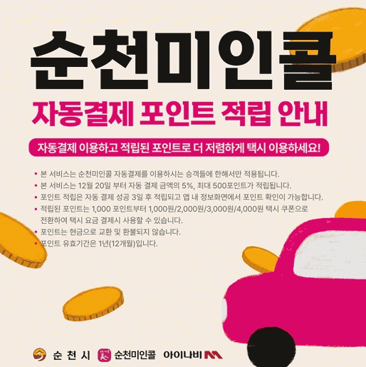 ÀÌ¿ëÀ» À§ÇÑ ¸ð¹ÙÀÏ ¾ÛÀº ¡®¼øÃµ¹ÌÀÎÄÝ` ¶Ç´Â `¾ÆÀ̳ªºñM`À» °Ë»öÇÏ¸é µÇ°í, ¸ð¹ÙÀÏ ¾Û ´Ù¿î·Îµå ÈÄ ÀÚµ¿°áÁ¦¸¦ ÀÌ¿ëÇÏ¸é ¿ä±ÝÀÇ 5%(ÃÖ´ë 500Æ÷ÀÎÆ®)¸¦ Àû¸³ÇÒ ¼ö ÀÖ´Ù.