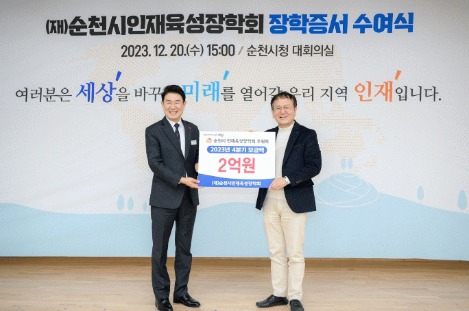 ÇÑÆí, ¼øÃµ½ÃÀÎÀçÀ°¼ºÀåÇÐȸ´Â Áö³ 2001³â ¼³¸³µÈ ÀÌÈÄ ÀÛ³â±îÁö 2,721¸íÀÇ Çлýµé¿¡°Ô 24¾ï 7õ¸¸ ¿øÀÇ ÀåÇбÝÀ» Áö±ÞÇßÀ¸¸ç, ¿ÃÇØ´Â Ç÷¯½º¾ËÆÄ ÀåÇбÝÀ» ½Å¼³ÇØ ¼öÇýÀÚ¸¦ È®´ëÇß´Ù.