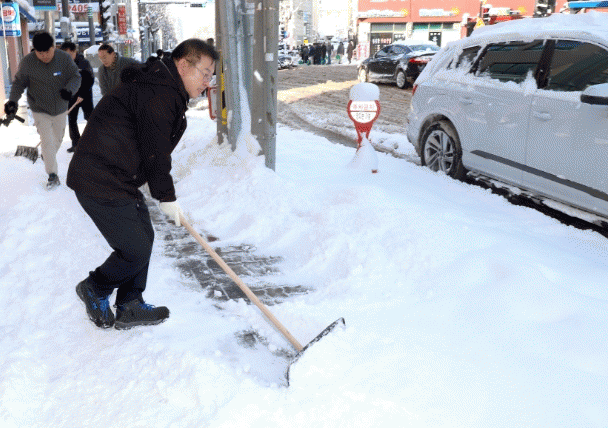 °ÃßÀ§ ¼Ó¿¡¼µµ °ø¹«¿øµéÀº ÃâÅð±Ù, µî±·±æ ÅëÇà ºÒÆí ÇØ¼Ò ¹× ºùÆÇ±æ ³«»ó ¹æÁö µî ±º¹ÎÀÇ ¾ÈÀüÀ» À§ÇØ »ó°¡ ÁÖº¯, ½Â°Àå ¾Õ, Àεµ µî ½Ã°¡Áö °÷°÷¿¡ ½×ÀÎ ´«À» Ä¡¿ü´Ù.