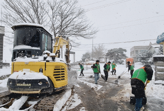 ¸é¼ÒÀçÁö¿¡ ½×ÀÎ ´«À» Ä¡¿ì±â À§ÇØ ±¼»è±â 3´ë¸¦ ÅõÀÔÇÏ°í ¿°ÈÄ®½·À» »Ñ·Á Á¦¼³ÀÛ¾÷À» ½Ç½ÃÇϰí, °¢ ¸¶À» ¾È±æ°ú À̸鵵·Î Á¦¼³¿¡´Â ÀÚÀ²¹æÀç´ÜÀÇ Æ®·¢ÅÍ 10¿© ´ë°¡ ÅõÀԵƴÙ.
