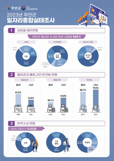 ¹«¾È±ºÀÇ ÀÏÀÚ¸® ½ÇŸ¦ Á¶»çÇÏ¿© °í¿ëÇöȲÀ» Áø´ÜÇϰí, ÀÏÀÚ¸® Á¤Ã¥ ¹× ´ëÃ¥ ¸¶·ÃÀ» À§ÇÑ ±âÃÊÀÚ·á·Î Ȱ¿ëÇϰíÀÚ ½Ç½ÃÇÑ À̹ø Á¶»ç´Â Åë°èû 2023³â Áö¿ªÅë°è Ç¥ÁظŴº¾ó È®»ê»ç¾÷ÀÇ ÀÛ¼º±â°üÀ¸·Î ¹«¾È±ºÀÌ ¼±Á¤µÇ¾î, ÃÑ »ç¾÷ºñÀÇ 90%¸¦ Åë°èûÀ¸·ÎºÎÅÍ Áö¿ø¹Þ¾Æ ÃßÁøµÆ´Ù.