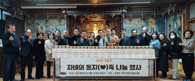 Àüº´¿ø ȸÀåÀº ¡°ºÎó´Ô ÀÚºñÀÇ ¶æÀ» ¸ð¾Æ µû¶æÇÑ Á× ÇÑ ±×¸©À» Áö¿ªÁֹε鿡°Ô ÇÔ²² ³ª´ ¼ö ÀÖ¾î º¸¶÷Â÷´Ù¡±¸é¼ ¡°Ãß¿î °Ü¿ï ¸¶À½ ÇÑ ÄÒÀ» ³ìÀÌ´Â µû¶æÇÑ ½Ã°£ÀÌ µÇ¼Ì±â¸¦ ¹Ù¶õ´Ù¡±°í ¸»Çß´Ù.