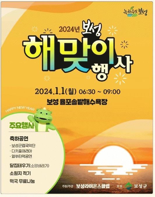 º¸¼º±º °ü°èÀÚ´Â ¡°ÇظÂÀÌ ¸í¼ÒÀÎ º¸¼º À²Æ÷¼Ö¹çÇØ¼ö¿åÀå¿¡¼ ±º¹Î°ú °ü±¤°´µéÀÌ 2024³â »õÇØ Ưº°ÇÑ Ã¹ ½ÃÀÛÀ» ¸ÂÀÌÇÒ ¼ö ÀÖµµ·Ï ±â»Û ¸¶À½À¸·Î Èû¾²°Ú´Ù.¡±¶ó¸ç ¡°¶°¿À¸£´Â žçÀ» º¸¸ç »õ·Î¿î ÇÑ ÇØ¸¦ Èñ¸ÁÂ÷°Ô ¸ÂÀÌÇÏ½Ã±æ ¹Ù¶õ´Ù.¡±¶ó°í ÀüÇß´Ù.