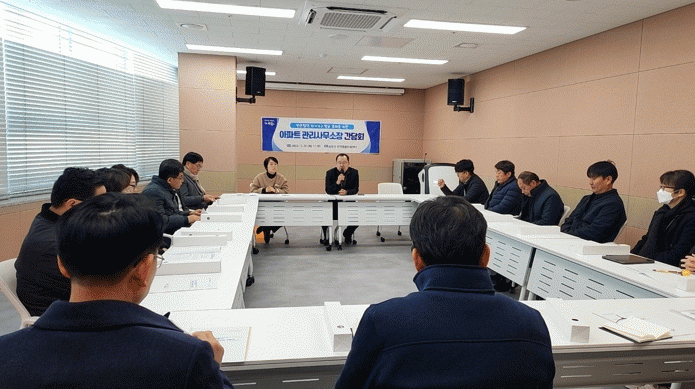 À̹ø °£´ãȸ´Â ¼øÃµ½Ã ÀÓ´ë¾ÆÆÄÆ® °ü¸®»ç¹«¼ÒÀå 12¸íÀÌ Âü¼®ÇÑ °¡¿îµ¥, ¾ÆÆÄÆ® ³» µ¹º½ »ç°¢Áö´ë¿Í ÀÌ¿ôµ½±â ¿ì¼ö»ç·Ê¿¡ ´ëÇØ °øÀ¯ÇÏ´Â ½Ã°£À» °¡Á³´Ù.