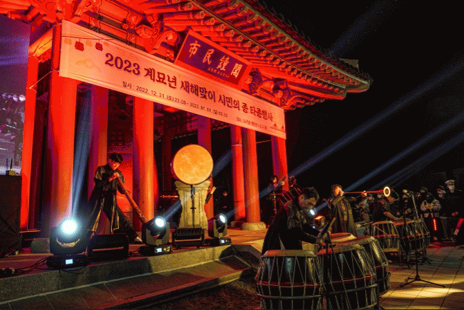 ³ëÀûºÀ »õõ³â ½Ã¹ÎÀÇ Á¾°¢¿¡¼ ¿¸®´Â ŸÁ¾½ÄÀº °©Áø³â »õÇØ 0½Ã¿¡ Àå¾öÇÏ°í ¿ì··Âù Á¾¼Ò¸®·Î 2024³â »õÇØÀÇ ÈûÂù Ãâ¹ßÀ» ¾Ë¸°´Ù. ÀÌ¾î¼ Áö¿ª °¢°è°¢Ãþ Àλç¿Í ½Ã¹Îµé, °ü±¤°´ÀÌ ÇÔ²² Âü¿©ÇØ »õ·Î¿î Èñ¸ÁÀÌ °¡µæÇÑ ¸ñÆ÷½ÃÀÇ Å« µµ¾àÀ» ¿°¿øÇÏ´Â 33¹øÀÇ Å¸Á¾ÀÌ À̾îÁø´Ù.