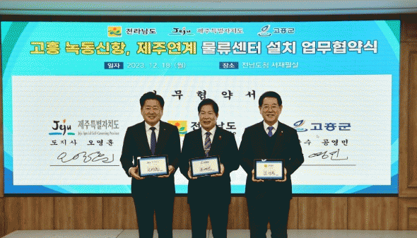 12¿ù Àü³²µµÃ»¿¡¼ °íÈﱺ, Àü¶ó³²µµ, Á¦ÁÖÆ¯º°ÀÚÄ¡µµ ¼¼ ±â°ü °£ ³ìµ¿½ÅÇ× ¹°·ù¼¾ÅÍ ½Å¼³ ¾÷¹«Çù¾àÀ» ü°áÇϰí, ³ìµ¿½ÅÇ× Ç׸¸±âº»°èȹ º¯°æ°ú ¹«¿ªÇ×ȸ¦ ÃßÁøÇÏ°Ô µÈ´Ù. ½ÒÀÌ ³ªÁö ¾Ê´Â Á¦ÁÖµµ¿¡ °íÈï½ÒÀÇ À¯Åë½ÃÀåÀ» °³Ã´ÇØ, ¿Ã ÇÑÇØ 213¸¸ ÅæÀ» ³³Ç°Çß´Ù. ÇâÈÄ È¹°¼± Áõ°¡ ¹× Å©·çÁî ¿©°´¼± ¿î¿µÀ¸·Î °íÈﱺ °ü±¤ ¹× Áö¿ª°æÁ¦°¡ ´õ¿í Ȱ±â¸¦ ¶î °ÍÀ¸·Î ±â´ë¸¦ ¸ðÀº´Ù.