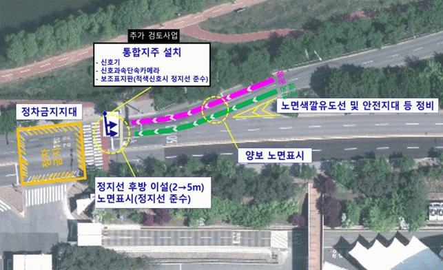 ÁÖ¿ä °ø»ç ³»¿ëÀº Ȳ»ö Á¤Â÷±ÝÁö´ë(¿»·Î¿ìÁ¸) ³ë¸éÇ¥½Ã, Ⱦ´Üº¸µµ Á¤Áö¼±(2¡æ5m) ¿¬ÀåÀÌ´Ù.