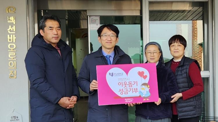 [ÅåÅå´º½º]È£³²´ëÇб³ »ç¶û³ª´®¼¾ÅÍ(¼¾ÅÍÀå À̹«Çü)´Â 12¿ù 28ÀÏ ¿¬¸»¿¬½Ã¸¦ ¸Â¾Æ ±³Á÷¿øµé·ÎºÎÅÍ ¸ð±ÝÇÑ ¼º±ÝÀ» ±¤ÁÖÁö¿ª °ü³» º¹Áö½Ã¼³ ¹× Àå¾ÖÀÎ ½Ã¼³ µî¿¡ ±âºÎÇß´Ù.
