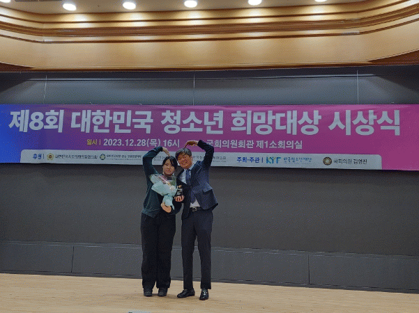 ¹Ú ÀÇ¿øÀº ¡°À̹ø û¼Ò³âÈñ¸Á´ë»ó ¼ö»óÀº ±× Àǹ̰¡ ³²´Ù¸£°í ³Ê¹«³ª ±ÍÇÑ »óÀÌ´Ù¡±¸ç ¡°¾ÕÀ¸·Îµµ Àü¶ó³²µµÀÇ ¹Ì·¡ÀΠû¼Ò³âµé¿¡°Ô ²Þ°ú Èñ¸ÁÀ» ÁÙ ¼ö ÀÖµµ·Ï ´õ¿í ´õ Á¤ÁøÇϰڴ١±°í ¼ö»ó ¼Ò°¨À» ¹àÇû´Ù.