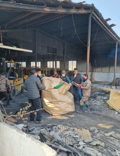 µµ¾Ï»ê¾÷Àº 12¿ù 15ÀÏ ¿ÀÈÄ 3½Ã°æ Àü±â ´©ÀüÀ¸·Î ¸¶´ë °øÀå 1µ¿ Àü¼Ò, 1µ¿ ÀϺΠ¼Ò½ÇµÇ´Â µî Àç»ê»óÀÇ Å« ÇÇÇØ¸¦ ÀÔ¾î ÁÖº¯À» ¾ÈŸ±õ°Ô Çß´Ù. ÀÌ ¼Ò½ÄÀ» ÀüÇØ µéÀº ¡®¹ü ÀÏ·¹ºì¡¯ ¸ðÀÓÀº Æ÷Å©·¹ÀÎ µî Àåºñ¸¦ ºô·Á Àü¼ÒµÈ °Ç¹° ö±Ù Àý´Ü, °Ç¹° ÀÚÀç Á¤¸®, ÈÀç Æó±â¹° ó¸® µîÀ» Çϸç, ºÀ»ç Á¤½ÅÀ» ¸¸ÃµÇÏ¿¡ º¸¿©Áá´Ù.