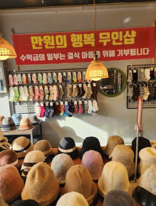 ¸¸¿øÀÇ Çູ ¸ðÀÚÁýÀº µ¹»ê ÇâÀÏ¾Ï ¾Õ¿¡ À§Ä¡ÇÑ ±îÆä È£À̾ÈÀÇ ÇÑÄÒ¿¡¼ ¿î¿µµÇ´Â ¹«Àμ¥À¸·Î ¸ðÀÚ, ¸ñµµ¸®, Àå°© µîÀ» 1¸¸ ¿ø¿¡ ÆÇ¸ÅÇϰí ÀÖ´Ù.
