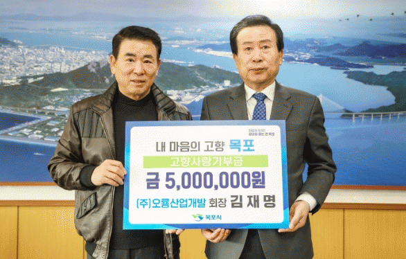 ¸ñÆ÷½Ã´Â ¢ß¿À·æ»ê¾÷°³¹ß ±èÀç¸í ȸÀåÀÌ °íÇâ»ç¶û±âºÎÁ¦ ±âºÎÃÖ°í¾× 500¸¸¿øÀ» ±âŹÇß´Ù°í 10ÀÏ ¹àÇû´Ù.