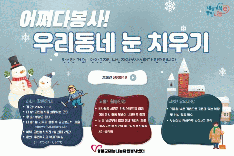 ´« Ä¡¿ì±â¿Í ÀÚ¿øºÀ»ç¸¦ °áÇÕÇÑ À̹ø Ä·ÆäÀÎÀº, ¿µ¾Ï±º¹ÎÀÇ Âü¿©·Î ´« ÇÇÇØ ÃÖ¼ÒÈ, »ýȰ ºÒÆí ÇØ¼Ò, º¸ÇàÀÚ ¾ÈÀü È®º¸ µîÀ» ¸ð»öÇϴ Ȱµ¿.