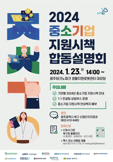 À̹ø ¼³¸íȸ¿¡´Â ºÏ±¸¸¦ ºñ·ÔÇØ ¡ã±¤ÁÖÅ×Å©³ëÆÄÅ© ¡ãÁß¼Òº¥Ã³±â¾÷ÁøÈï°ø´Ü ¡ãÇѱ¹»ê¾÷´ÜÁö°ø´Ü ¡ãÇѱ¹ÀüÀÚÅë½Å¿¬±¸¿ø ¡ãÇѱ¹ÀüÀÚ±â¼ú¿¬±¸¿ø ¡ãÇѱ¹±¤±â¼ú¿ø ¡ãÇѱ¹¹ß¸íÁøÈïȸ ¡ã¿¬±¸°³¹ßƯ±¸ÁøÈïÀç´Ü ¡ãKOTRA±¤ÁÖÀü³²Áö¿ø´Ü ¡ã±â¼úº¸Áõ±â±Ý µî 12°³ ±â°üÀÌ Âü¿©ÇØ ±â°üº° ´Ù¾çÇÑ Áß¼Ò±â¾÷ Áö¿ø½ÃÃ¥ ¼³¸íÀÌ ÁøÇàµÈ´Ù.
