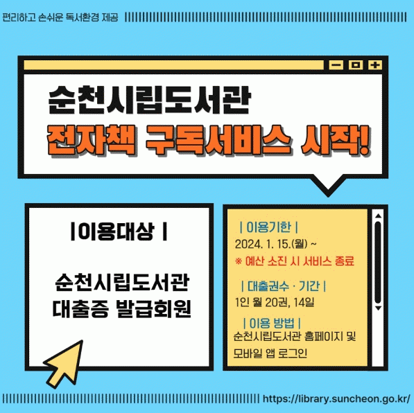 ÀÌ ¼ºñ½º´Â 9¸¸ 5õ¿© Á¾ÀÇ ÀüÀÚÃ¥°ú 2õ¿© Á¾ÀÇ ¿Àµð¿ÀºÏÀ» Á¦°øÇϸç, ¸Å¿ù 1õ¿© Á¾ ÀÌ»óÀÇ »õ·Î¿î µµ¼¸¦ ¼±º¸ÀÏ ¿¹Á¤ÀÌ´Ù. ¼ÒÀåÇü ÀüÀÚÀÚ·á¿Í ´Þ¸® ¿©·¯ ¸íÀÌ µ¿½Ã¿¡ °°Àº Ã¥À» ÀÌ¿ëÇÒ ¼ö ÀÖÀ¸¸ç, ´ëÃâ Àοø¼ö¿¡ Á¦ÇÑÀÌ ¾ø´Ù.