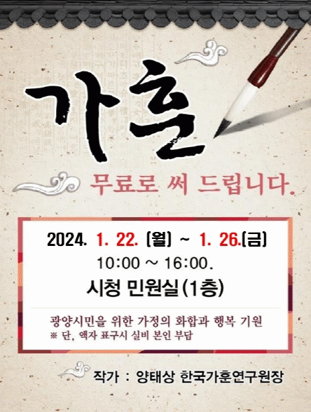 Çà»ç´Â ¿ÀÀü 10½ÃºÎÅÍ ¿ÀÈÄ 4½Ã±îÁö ÁøÇàµÇ¸ç, 2024³â û·æÀÇ ÇØ¸¦ ¸Â¾Æ ½Ã¹ÎÀÌ Á÷Á¢ ÁغñÇÑ °¡ÈÆÀ̳ª ¡®ÃʽɺҺ¯(ôøãýÝÕܨ)-´Ã óÀ½Ã³·³ º¯ÇÔ¾øÀÌ¡¯ µî 20¿© °¡ÁöÀÇ ÁغñµÈ ¹®±¸ÀÇ °¡ÈÆÀ» ¹«·á·Î ½áÁØ´Ù.