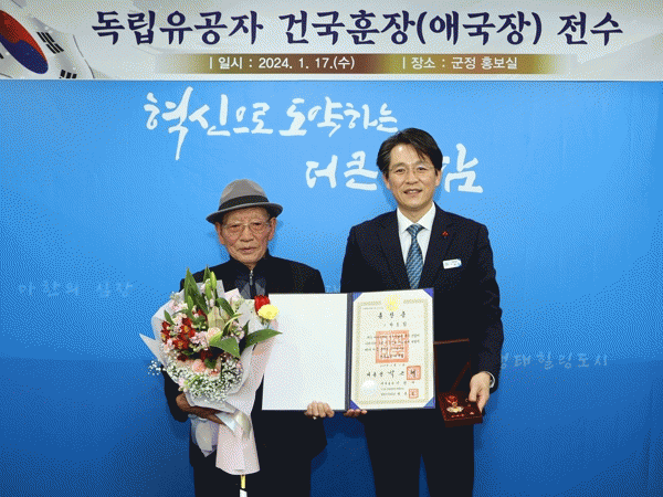 ¿ì½ÂÈñ ¿µ¾Ï±º¼ö°¡ 17ÀÏ ±ºÃ»¿¡¼ ´ëÇѹα¹Á¤ºÎ¸¦ ´ë½ÅÇØ ±¸ÇѸ» ÀǺ´ °í(ͺ) ¹ÚµµÁý ¼±»ýÀÇ °Ç±¹ÈÆÀå ¾Ö±¹Àå°ú ÈÆÀåÁõÀ» Àü¼öÇß´Ù.