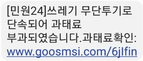 ½Ã¿¡ µû¸£¸é, ÃÖ±Ù ¡®[¹Î¿ø24]¾²·¹±â ¹«´ÜÅõ±â·Î ´Ü¼ÓµÇ¾î °úÅ·ᰡ ºÎ°úµÆ½À´Ï´Ù.¡¯¶õ ³»¿ëÀÇ ½º¹Ì½Ì ¹®ÀÚ¸Þ½ÃÁö¸¦ ¹ÞÀº ´Ù¼öÀÇ ½Ã¹ÎÀ¸·ÎºÎÅÍ °ü·Ã »ç½ÇÀ» È®ÀÎÇϱâ À§ÇÑ ÀüÈ·Î ¸ö»ìÀ» ¾Î°í ÀÖ´Ù°í ¹àÇû´Ù.