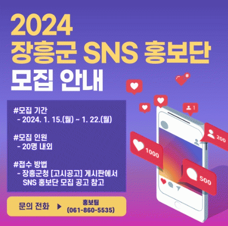 ¿ÃÇØ ÀåÈﱺÀÌ ¸ðÁýÇÏ´Â ¡®SNS È«º¸´Ü¡¯Àº ÃÑ 20¸í ³»¿Ü·Î, ¸ðÁý ±â°£Àº 1¿ù 22ÀϱîÁö´Ù.